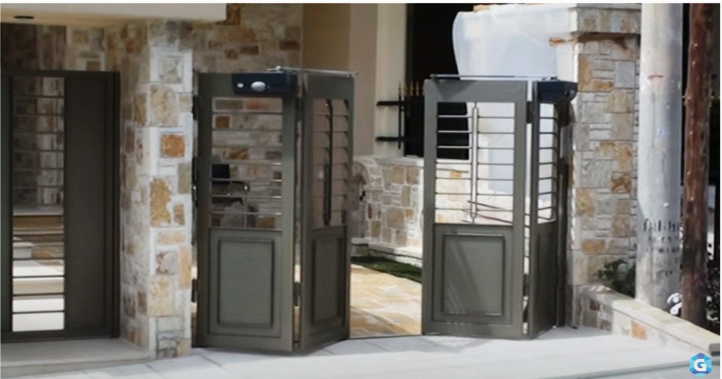 Η λύση ήταν η δίφυλλη ανοιγόμενη αναδιπλούμενη γκαραζόπορτα με οδηγό στο έδαφος.
