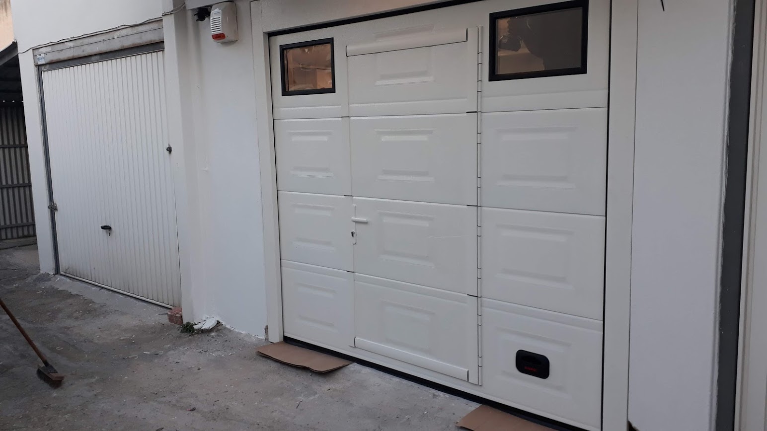 Αφαιρέθηκε η παλαιά μονοκόμματη γκαραζόπορτα και τοποθετήσαμε πολύσπαστη γκαραζόπορτα η οποία πλέον σφραγίζει και κινείται μέσα σε οδηγούς χωρίς ανάκληση προς τα έξω.
