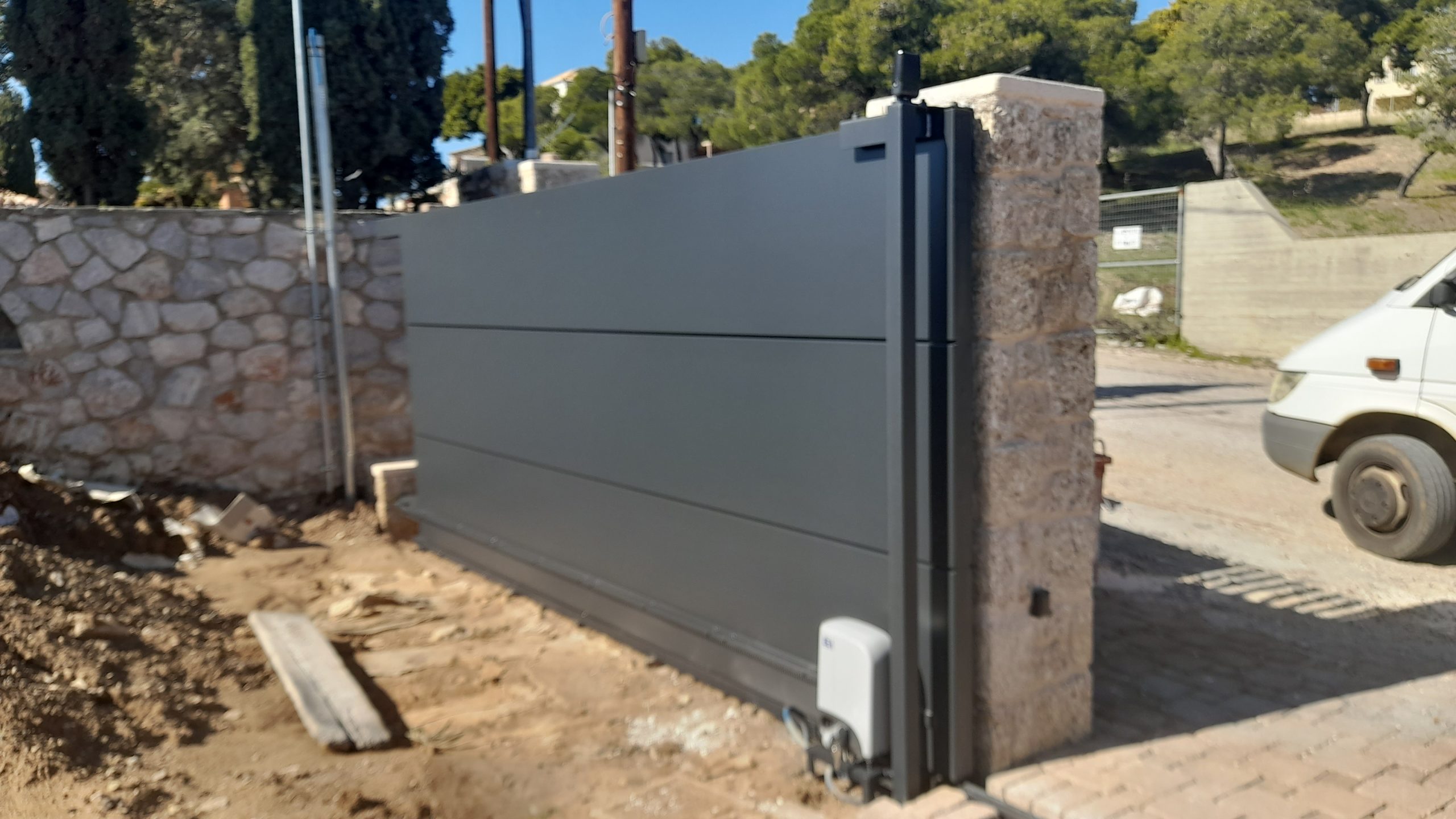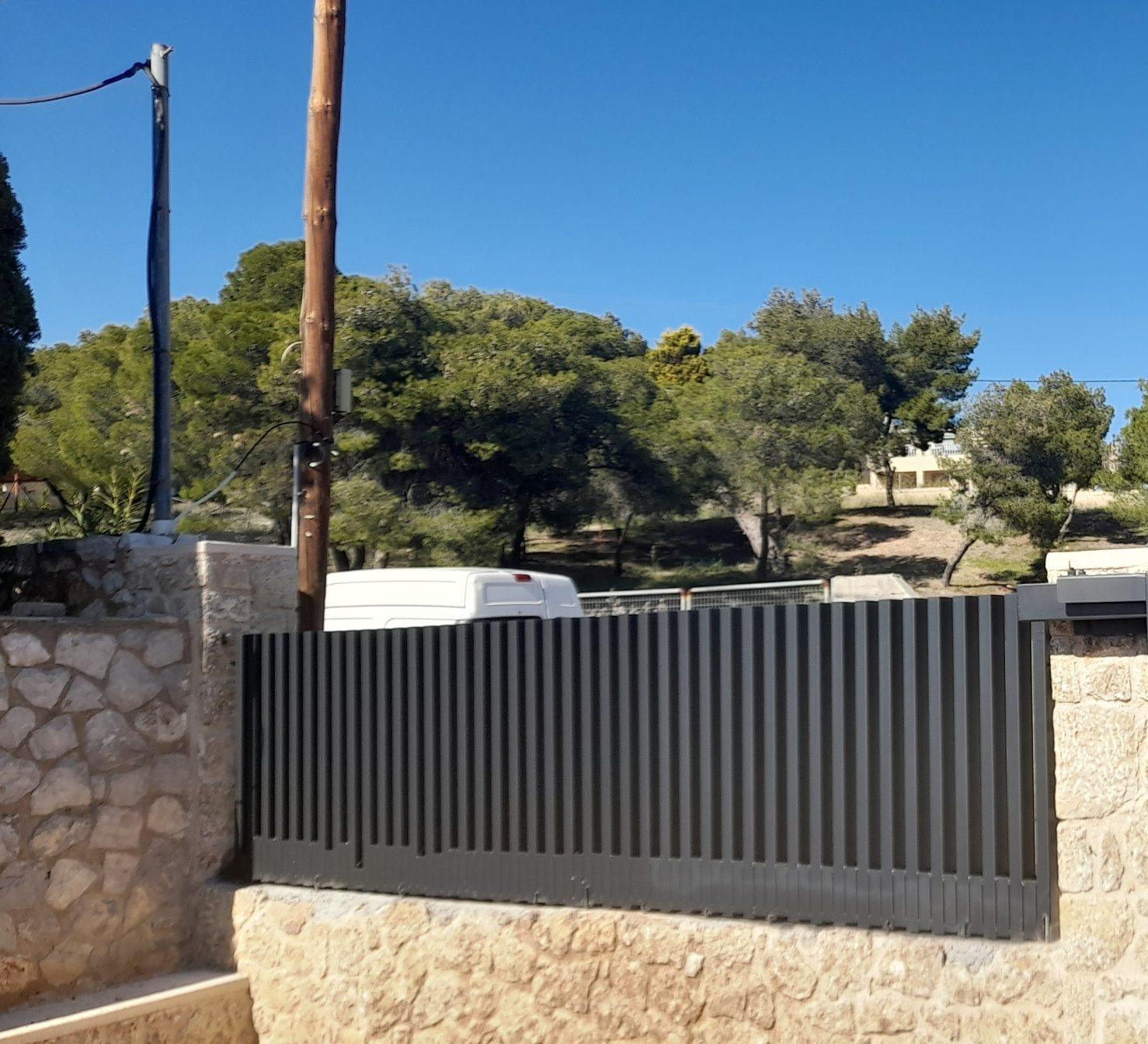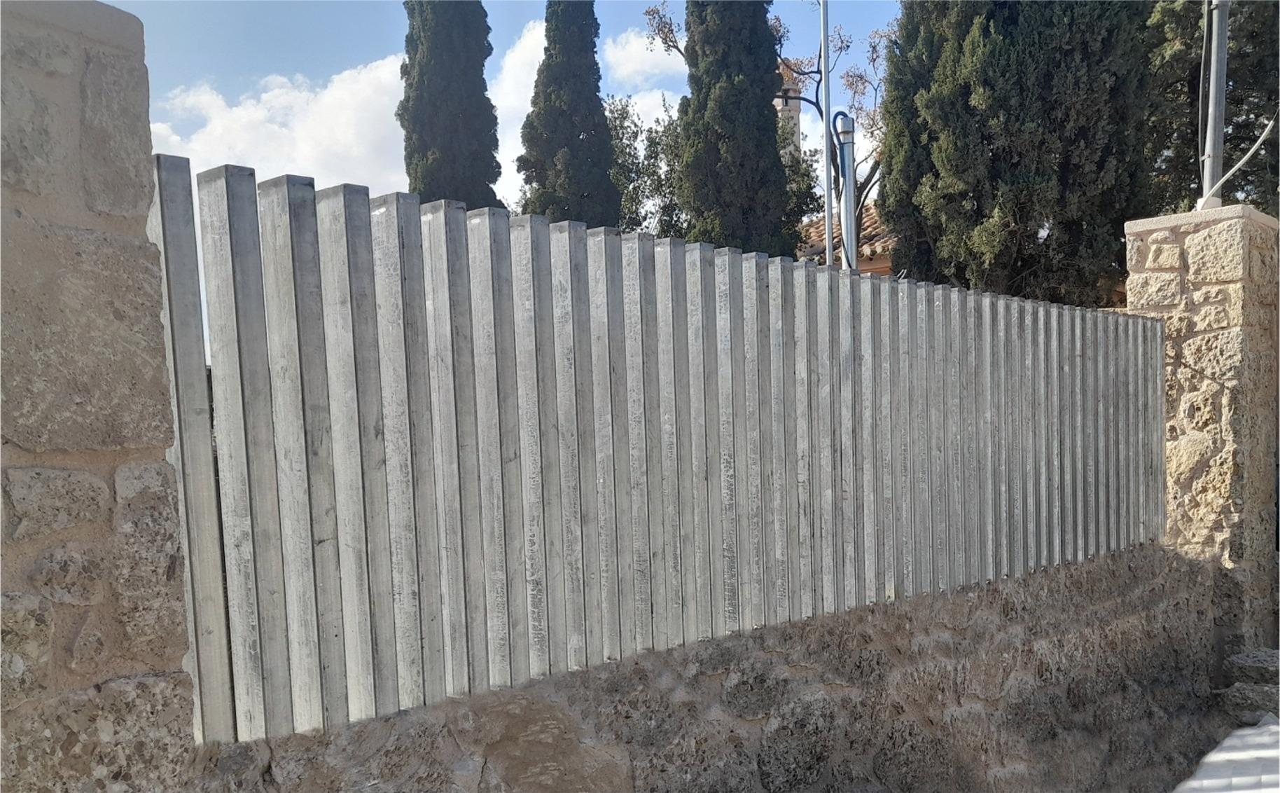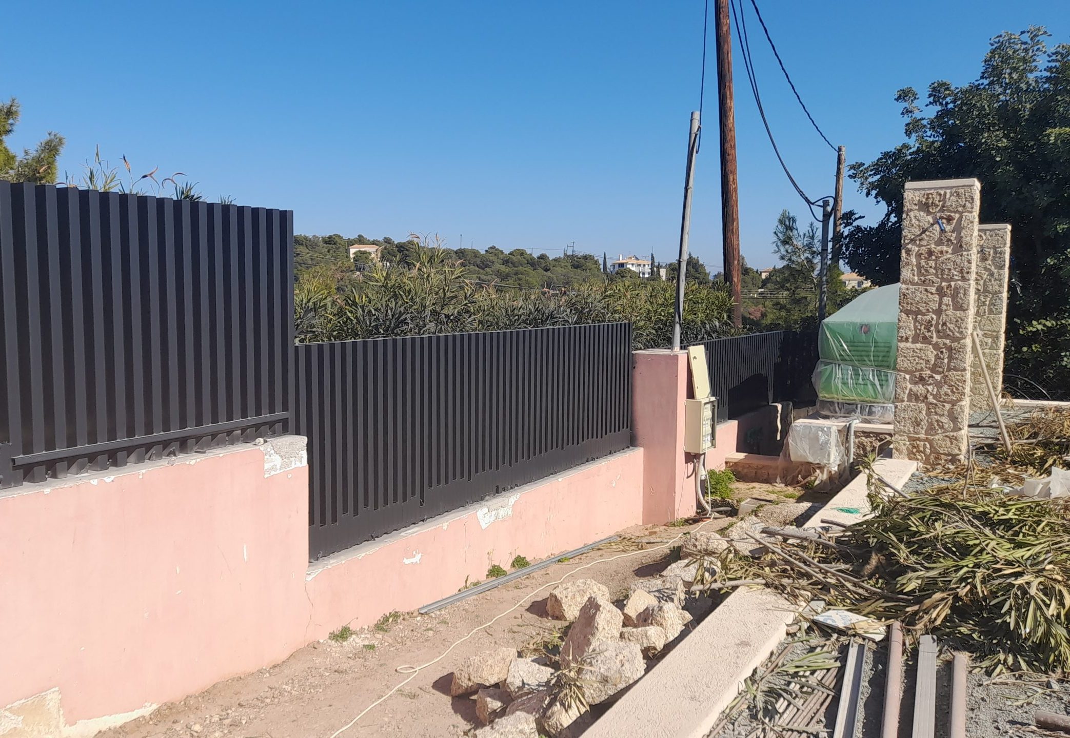 Το άνοιγμα της εισόδου καλύφθηκε με πόρτα για τους πεζούς σε διάσταση πλάτους περίπου 1 μέτρο, στερεώθηκε κολώνα από βαρέως τύπου σιδηροδοκό και εν συνεχεία τοποθετήσαμε τη συρόμενη γκαραζόπορτα σε διάσταση περίπου 4 μέτρα. Το ύψος των πορτών έγινε στα 2 μέτρα.