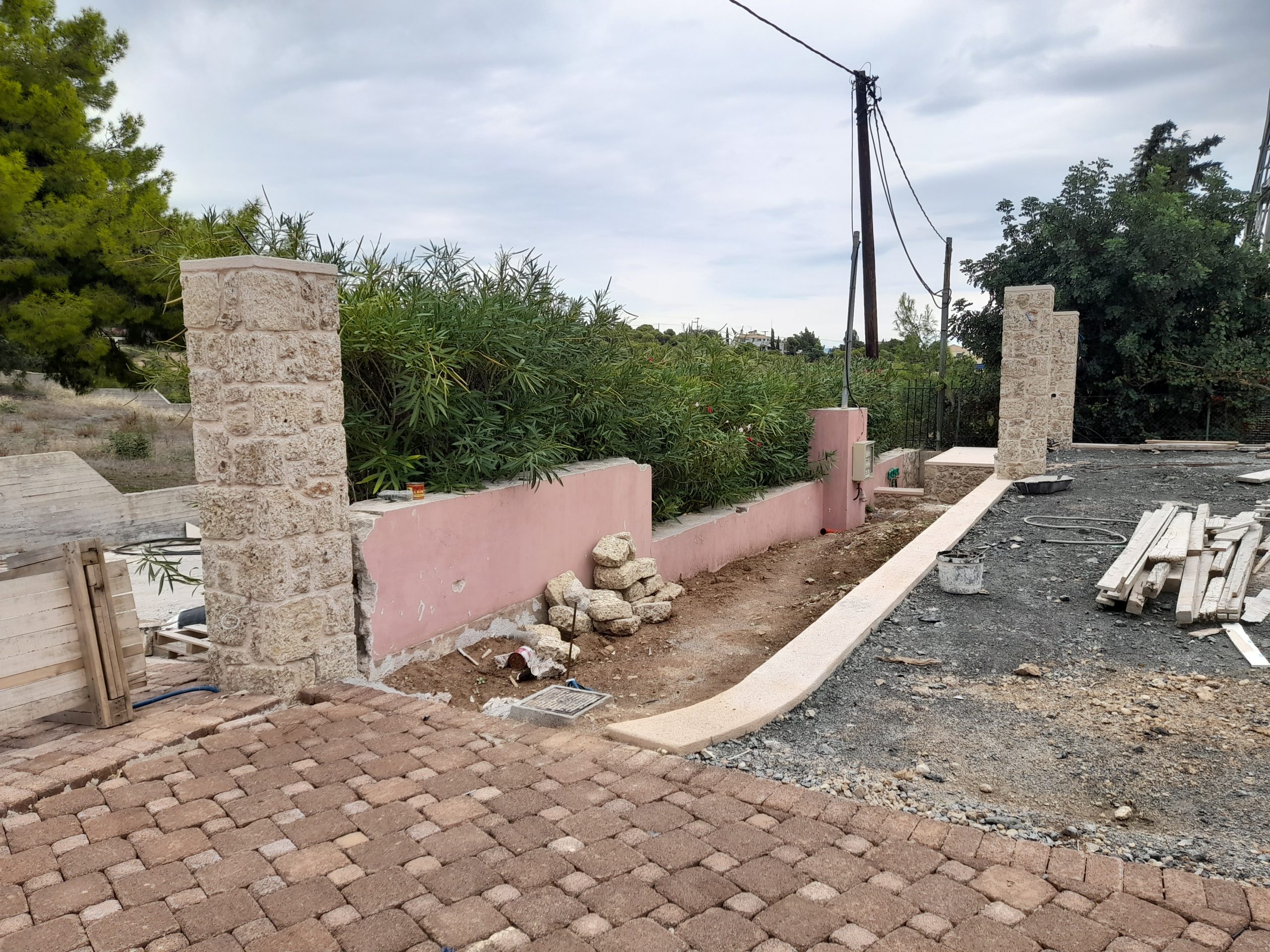 Αφού διαμορφώθηκε ο περιβάλλοντας χώρος από μπετά, δάπεδα, πέτρινες κολώνες και καθορίστηκε η διάταξη των πορτών και της περίφραξης, ήρθε η δική μας στιγμή. Έγιναν οι τελικές μετρήσεις και ξεκινήσαμε την κατασκευή.