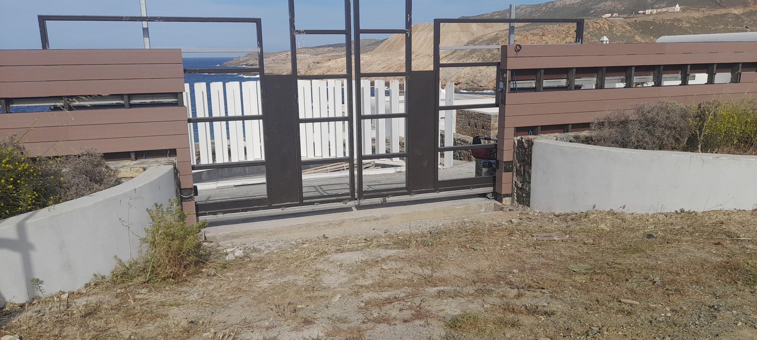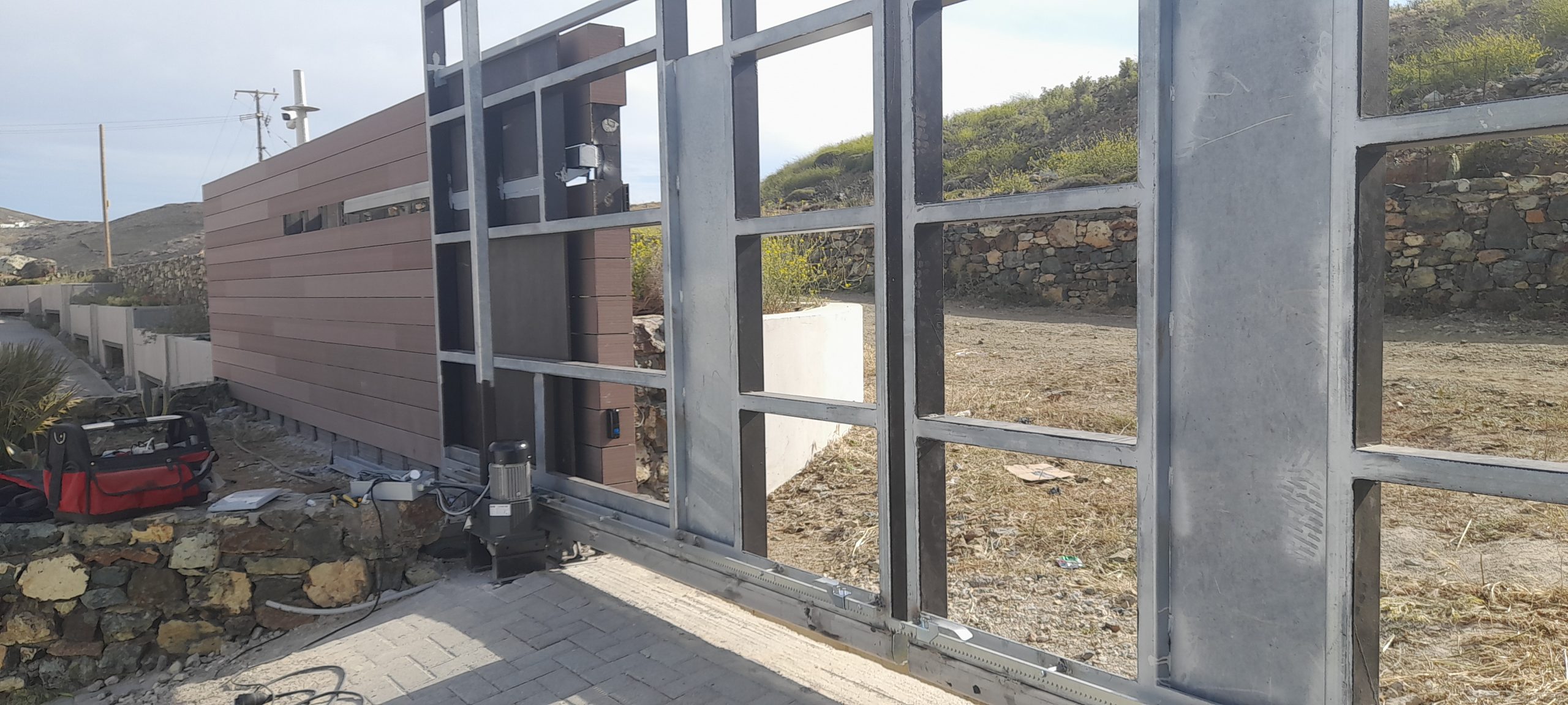 Πέραν από το καλαίσθητο σχέδιο, η πρόκληση για εμάς ήταν η κατασκευή μίας σταθερής και στοιβαρής γκαραζόπορτας που θα μπορεί να ανταπεξέλθει στο δυνατό αέρα και στην υγρασία του νησιού σε βάθος χρόνου.