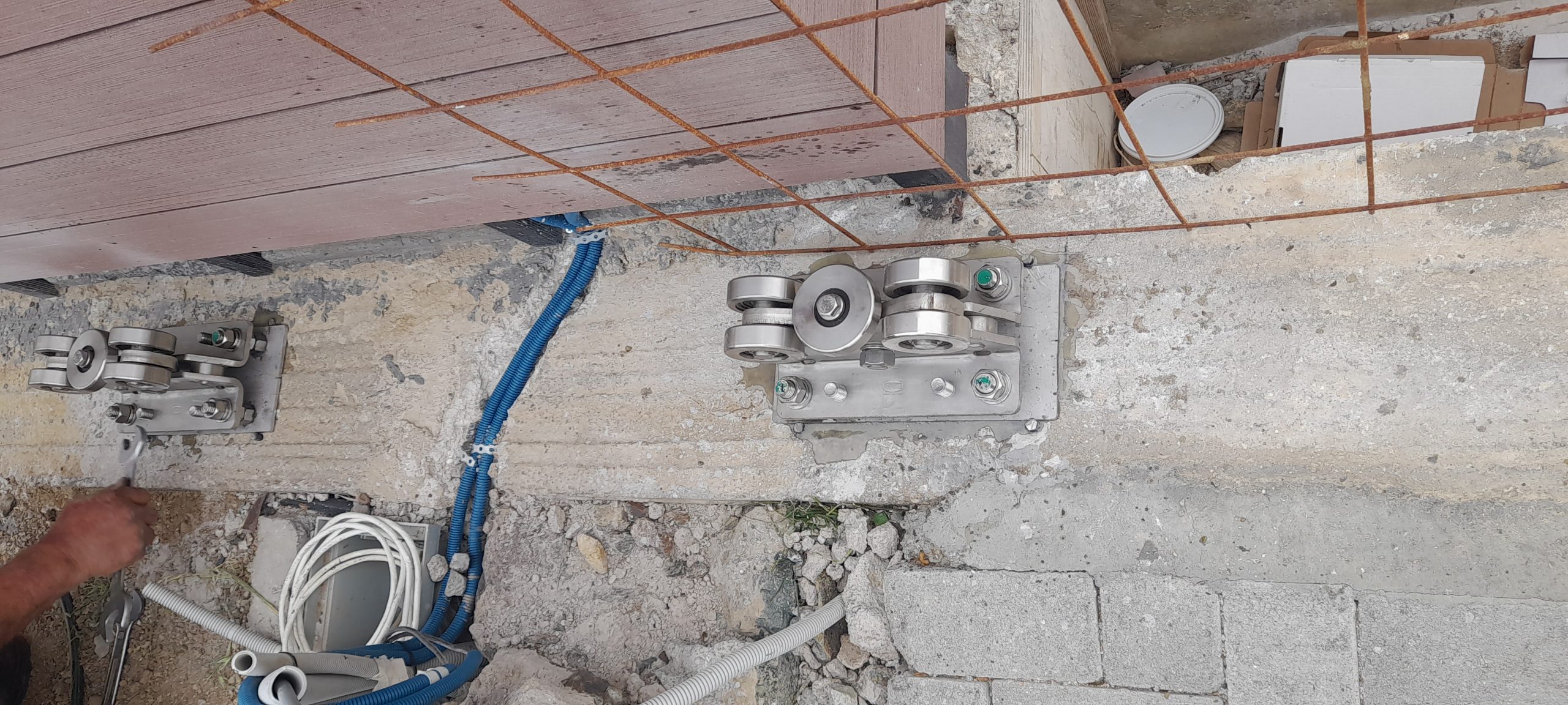 Η ηλεκτροκίνηση των συρόμενων πορτών έγινε με δύο μοτέρ της Ιταλικής εταιρείας Dea System, μοντέλα GULLIVER 18ΝΕΤ, κατάλληλα για βάρος φύλλου πόρτας έως 2100 κιλά.Τοποθετήθηκαν ενσύρματα φωτοκύτταρα για την ασφαλή διέλευση των οχημάτων.