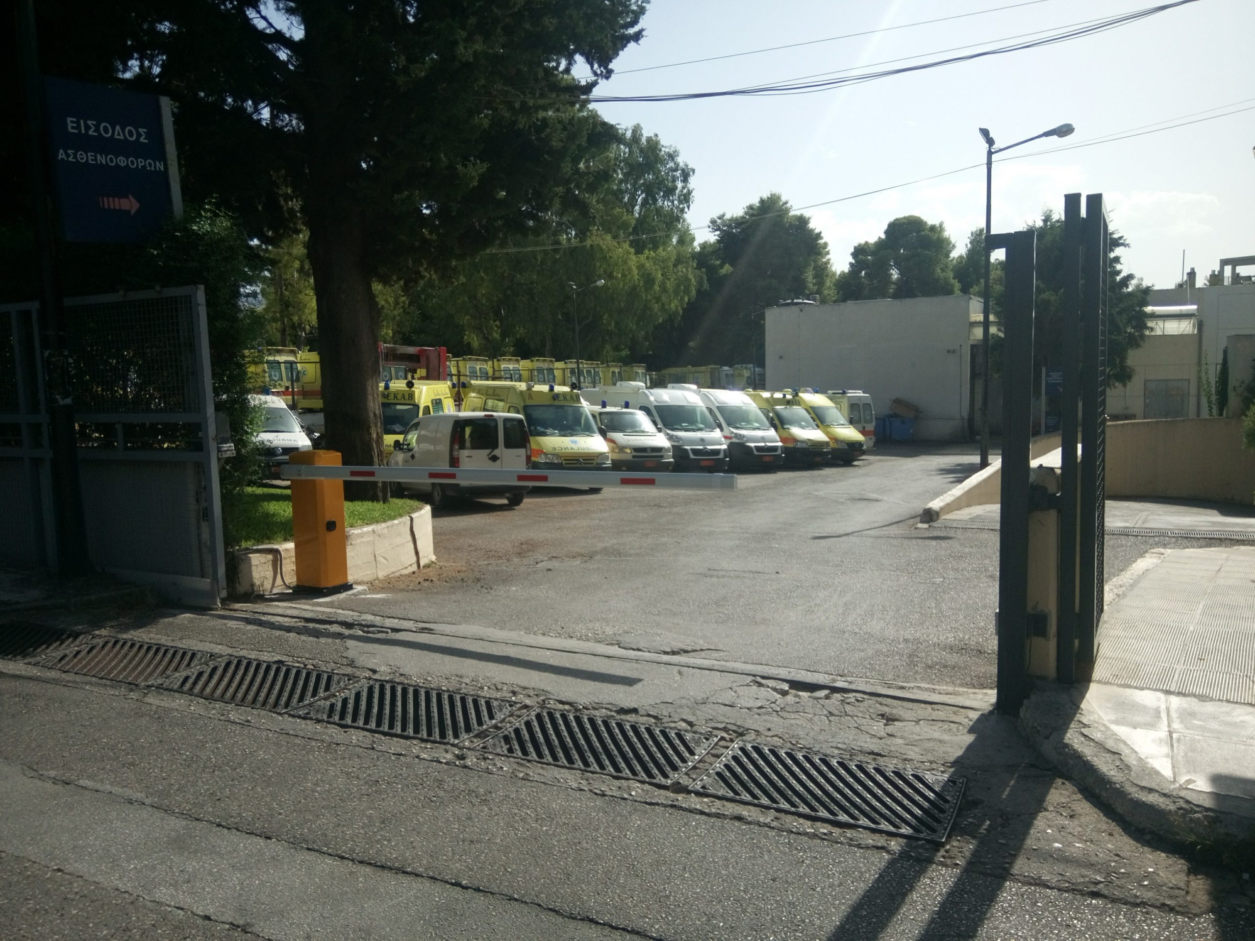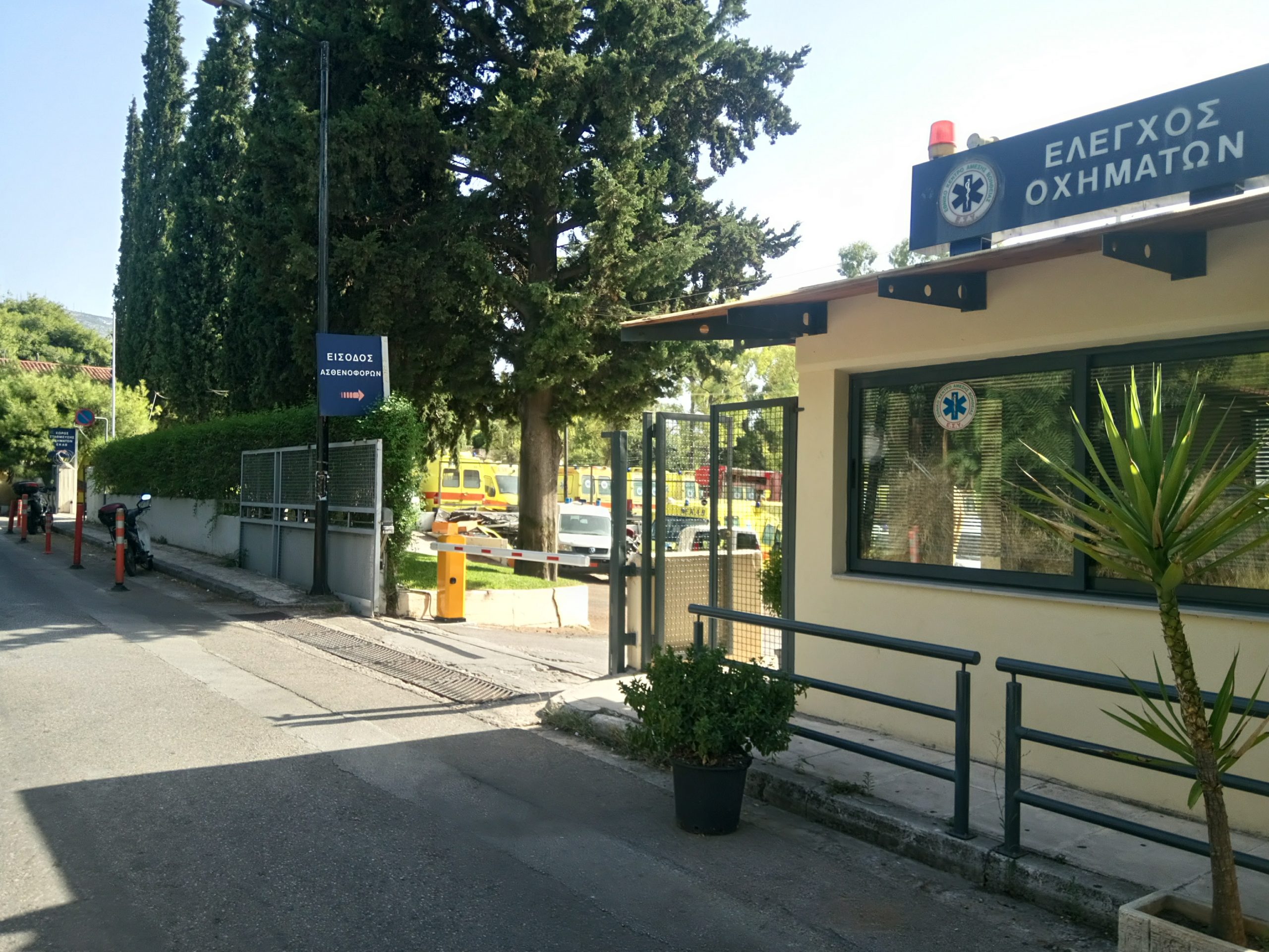 Αυτόματη μπάρα ελέγχου σε είσοδο σταθμού ασθενοφόρων του ΕΚΑΒ