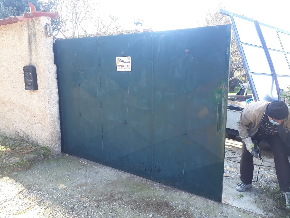 Ήρθε η ώρα να αλλάξουμε την παλαιά γκαραζόπορτα με νέα συρόμενη πόρτα και έτσι το συνεργείο ξεκινά δουλειά με όλες τις προφυλάξεις ασφάλειας κατά Covid-19.