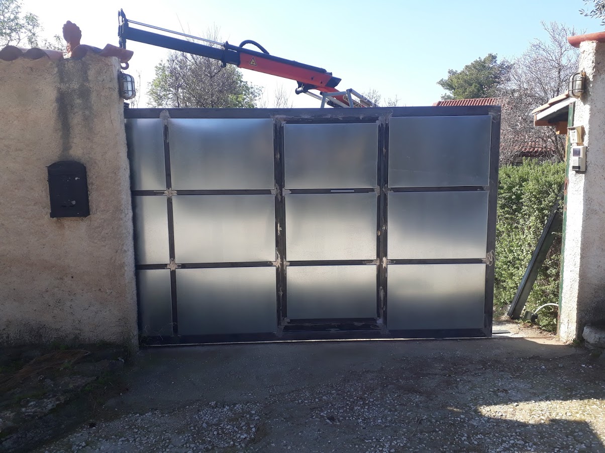 Η νέα γκαραζόπορτα κατασκευάστηκε με κοιλοδοκούς πάχους 3 χιλιοστών, ενισχυμένα ράουλα κύλισης και ράουλα στήριξης τεφλόν Ιταλίας.