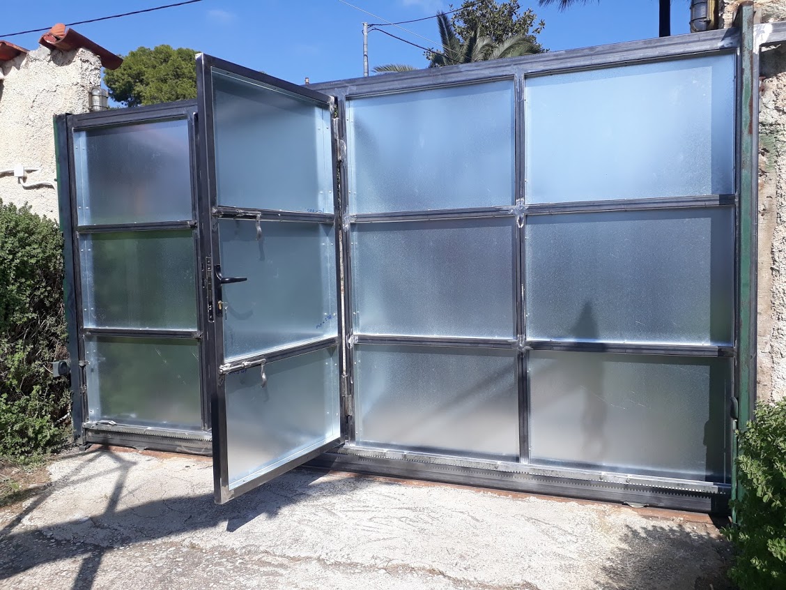 Μέσα στη γκαραζόπορτα τοποθετήθηκε πορτάκι για πεζούς αφού δεν υπάρχει άλλη είσοδος.