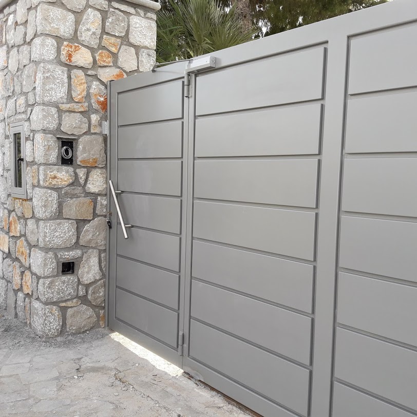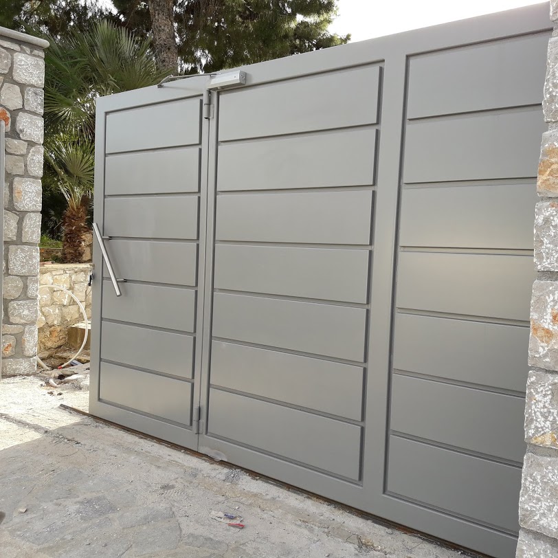 Είναι μία ενιαία γκαραζόπορτα που σύρεται και ανοίγει πλήρως για τη διέλευση οχημάτων.